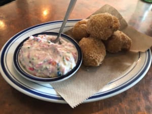 De’Long recommends serving a brown ale with these tasty treats as it complements the andouille flavor.