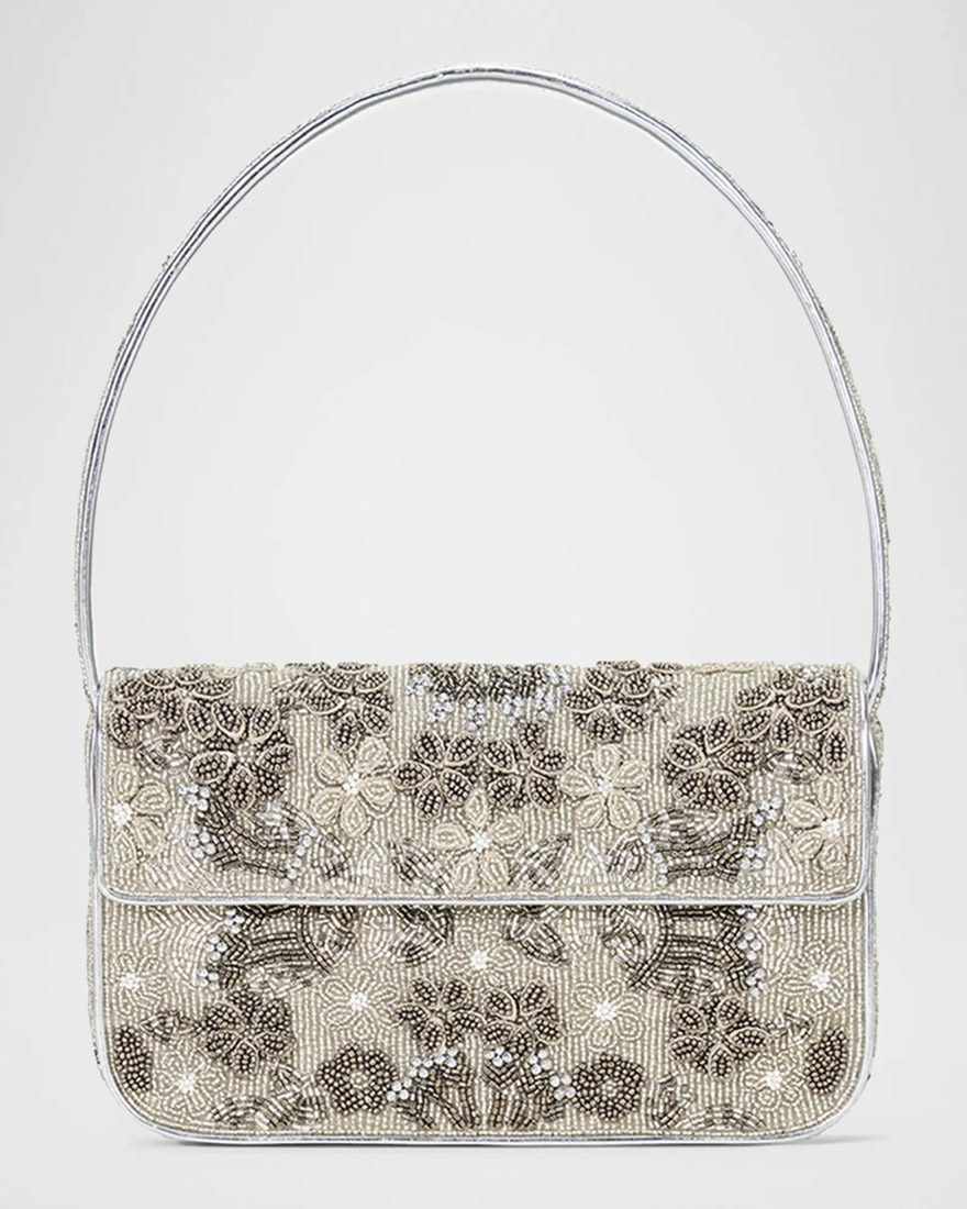 Bring a touch of sparkle to the holiday season with STAUD’s cult-favorite Tommy Bag, reimagined in intricate beading. Its flap silhouette and satin-lined interior offer both polish and practicality, while the shimmering, subtle floral design makes it the perfect plus-one for any festive fete. Whether paired with a chic cocktail dress or a posh two-piece set, this shoulder bag delivers just the right dose of glam.
