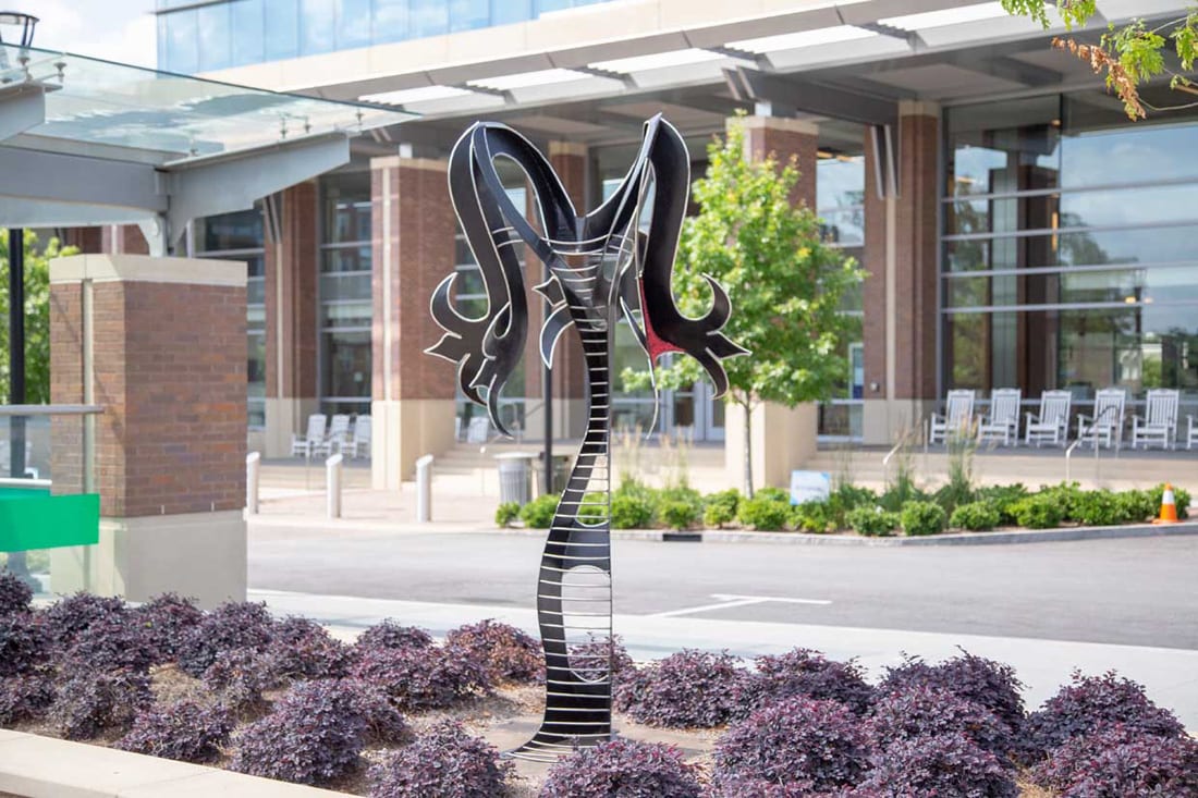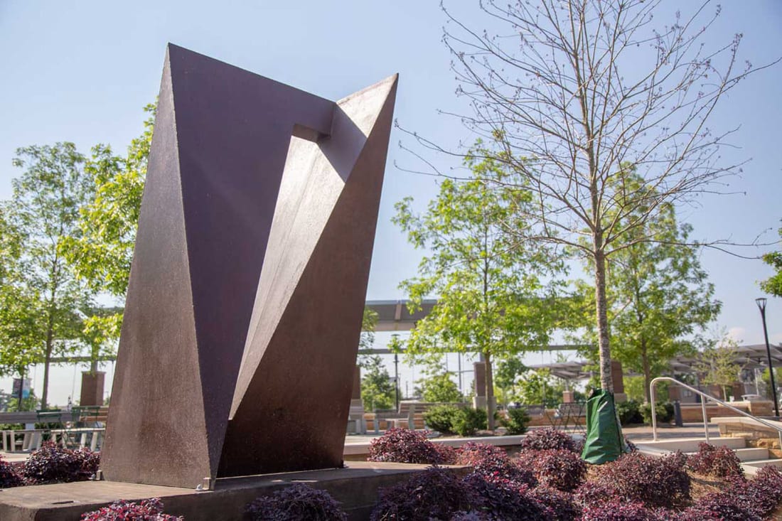 Featured in the inaugural sculpture garden competition unveiled last year at City Springs, the winning works include Optimistical by Nathan Pierce of Cape Giradeau, Missouri; Doppelganger by Carl Billingsley of Greensboro, North Carolina; Delilah by Joni Younkins-Herzog of Athens, Georgia; and Hand Plant by Jack Howard-Potter of New York City.