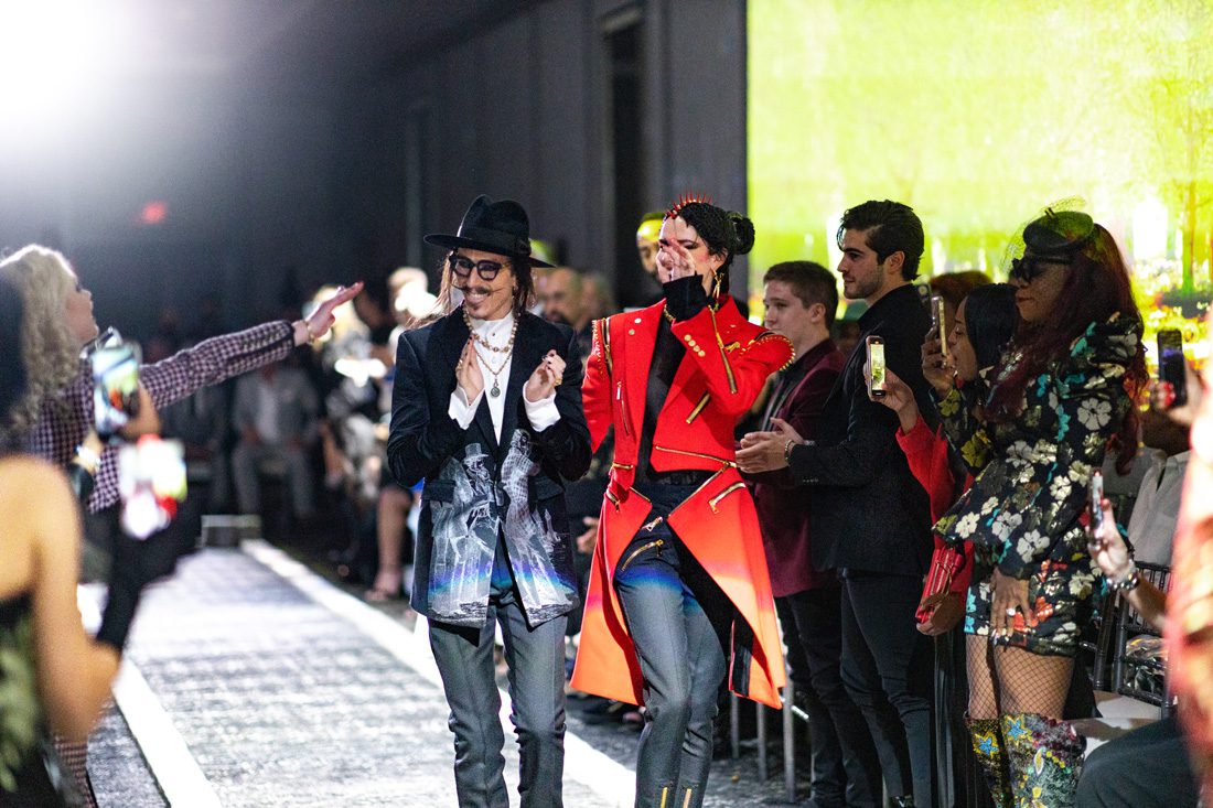 The immersive runway show, set against the high-tech visuals of a video game, was produced by Fathom7 Digital Studios; 26TH Letter Productions, noted for the “Titanic: The Artifact Exhibition”; and Catwalk Productions, led by Randi Layne. Guests included Josh Murray of “The Bachelor,” and actors Rob Riley and Eliza Bennett of CW’s “Dynasty.” Actors Griffin Matthews of “The Flight Attendant,” Harrison Osterfield of “The Irregulars” and Alex Vlahos of “Outlander” made runway appearances.