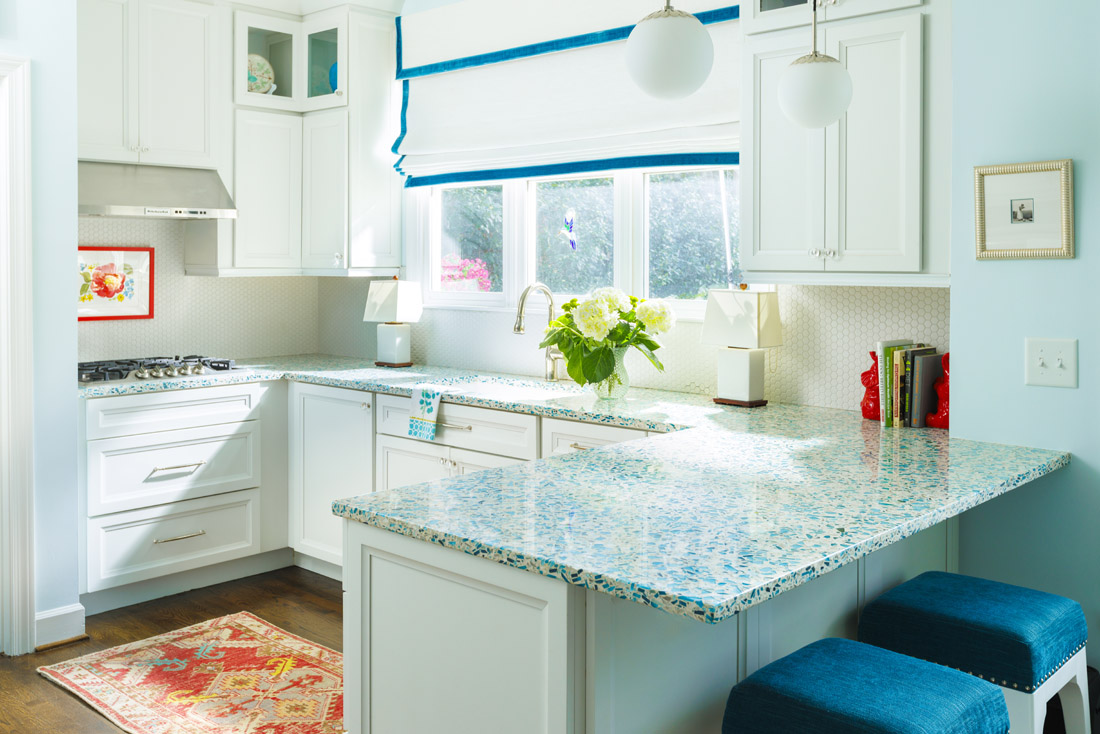 “Her home is hyper-personalized, and she loves her dog,” says Prince, who didn’t want the representation of the dog to be an afterthought. “We’ve even talked about adding a dog wash station to the garage with turquoise-colored paw tiles. We wanted to display her love proudly.”