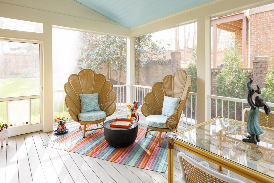 That includes the screened-in patio, where Garner spends a lot of time. She is the lead on Georgia Tech’s VIP Sports Valuation & Analytics program, and she can often be found watching games out there. She particularly loves the peacock chairs Prince found her, and says she and Miles love to while away the afternoon together. “The chairs are so me,” Garner says. “Susie didn’t even have to ask.”