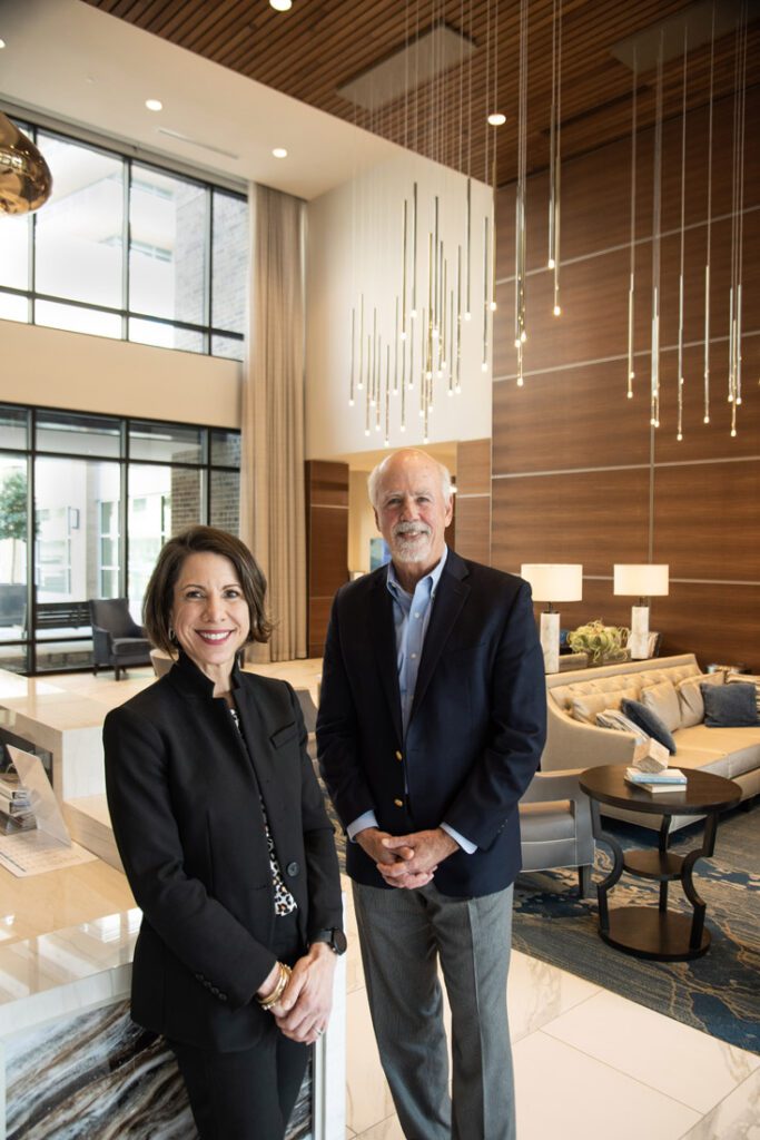 “A project like Kingsboro comes together with many talented hands collaborating,” says Jim Hudgins, president of THW Design, who helmed a project team of 12 to make it happen. Here, Hudgins and Lenbrook COO Felecia Sveda discuss bringing the new build from rendering to real life.