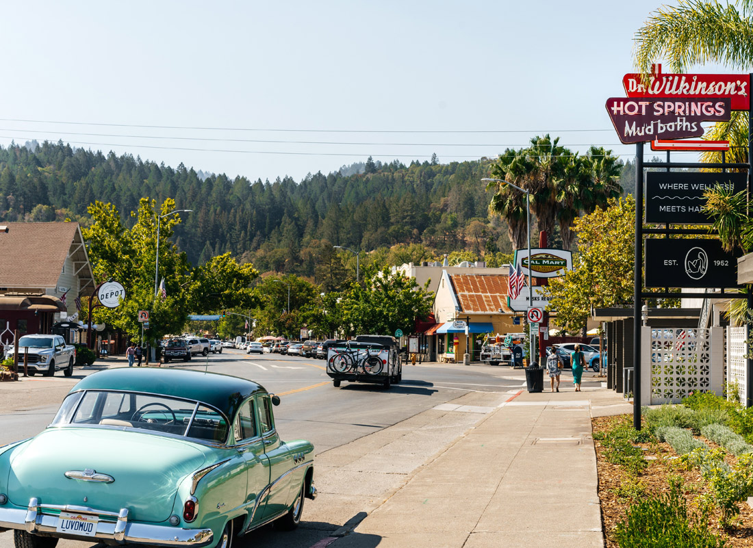 Calistoga is known for its geothermal hot springs, so I took a short stroll from Okaeri through the town’s charming center and checked into the spa at Dr. Wilkinson’s Backyard Resort & Mineral Springs. For the next 30 minutes, I soaked in a mineral whirlpool bath infused with essential oils, sea minerals and electrolytes. The spa attendant let me get settled and then applied a face mask and CBD oil and salts to the warm water. After the soak, I spent 10 minutes in the steam room and another 10 in a blanket wrap with noise cancelling headphones on, completely checked out. Following my bath, I visited House of Better, Dr. Wilkinson’s alfresco dining spot. I ordered grilled halibut tacos and Mud Water, a blend of masala chai, cacao, mushrooms and adaptogens mixed with oat milk. I relished the relaxing after-effects of my treatment and the warm California sun hitting my skin in the middle of winter.