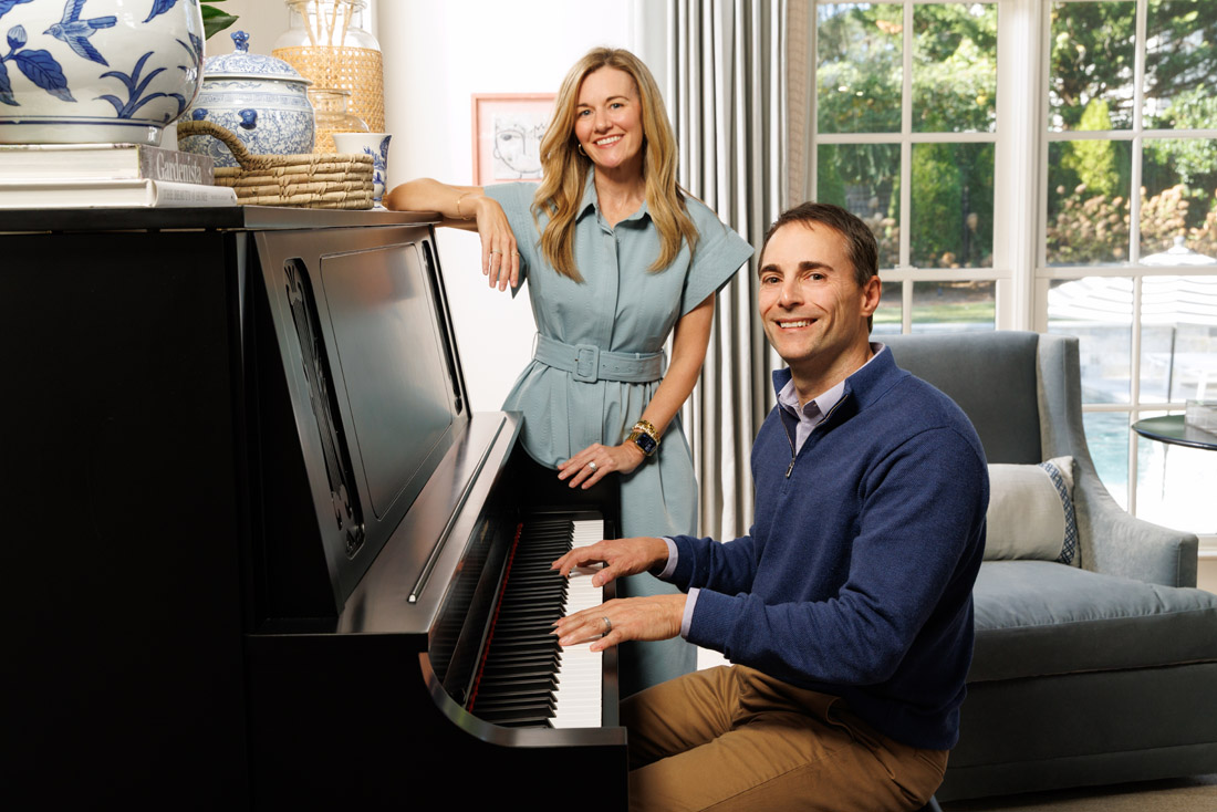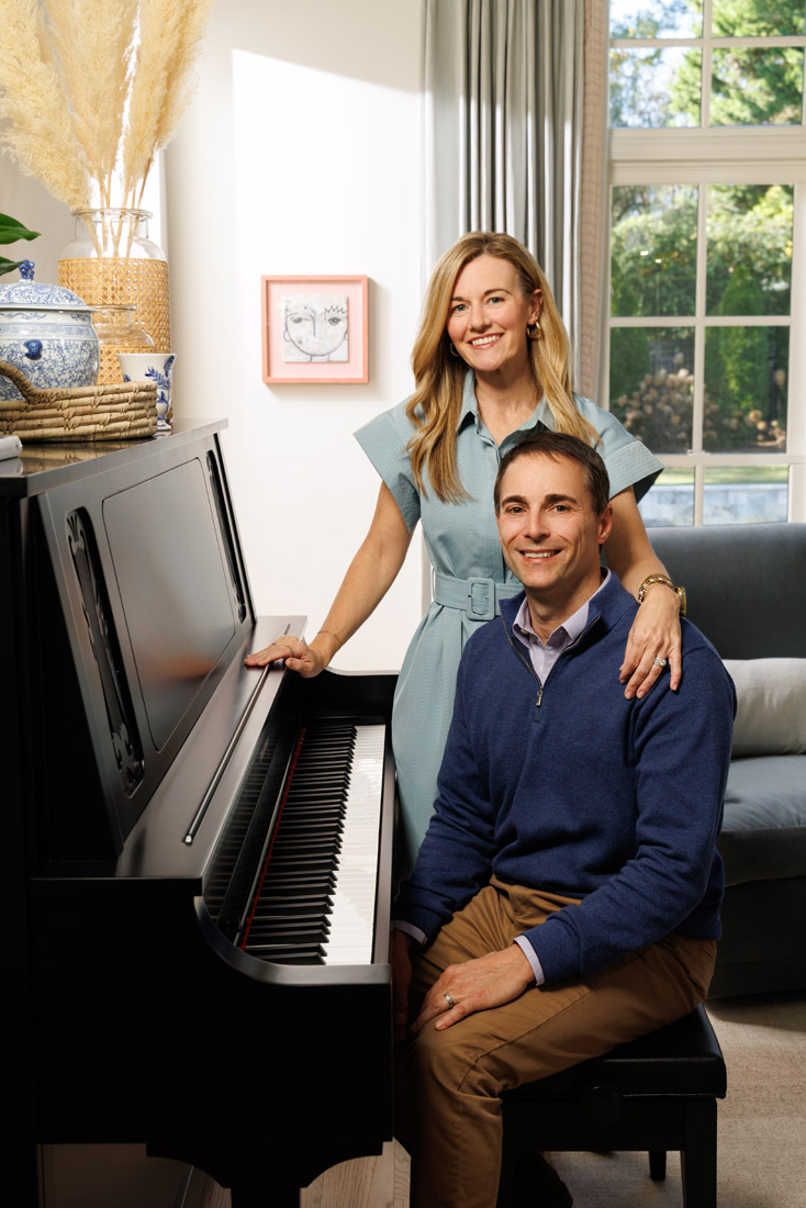 1. The upright piano in the family room is a stunning future heirloom piece as well as a special item for the family. “My husband plays piano and has taken lessons on and off from the Braves’ organist for years,” Andrea says. “Both children also learned on this piano.”