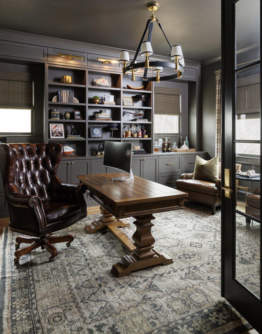 The home is elegant but by no means quiet. The family entertains often, especially in the fall during football season, since Brett is a University of Alabama football fan. “There are people here nearly every weekend,” says Davis. To accommodate them, existing French doors were replaced with a full sliding glass panel to create a sense of indoor/outdoor living between the main floor and the much-used screened-in porch.