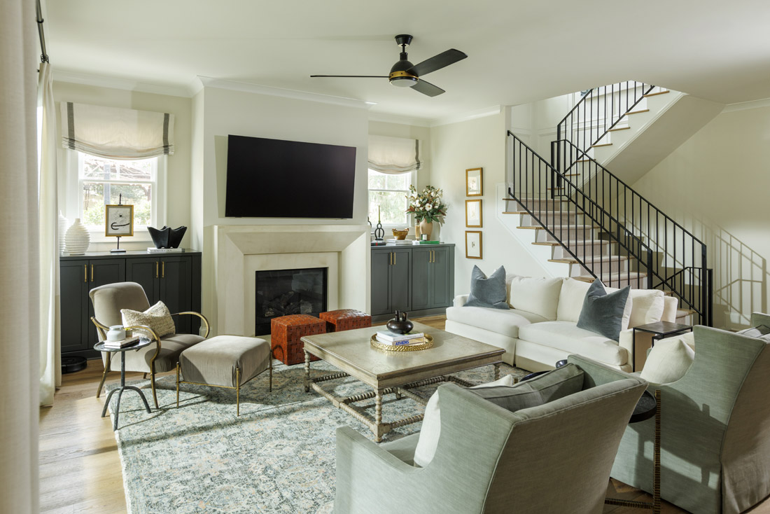 One of the most impactful changes Eason and her team made to switch up the vibe was the floors that bring in a light warmth from wide white oak panels. Another smart change was the addition of custom storage by Kitchen & Bath Design Group out of Winder, which provided Davis with ample storage on the main level in the kitchen, mudroom and butler’s pantry.