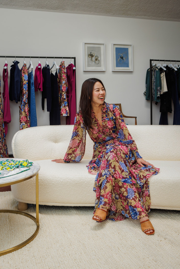 For Lee, it was the role of assistant designer at Nanette Lepore. Lee went on to become a designer at Catherine Malandrino and Elie Tahari, developing her talent while simultaneously learning the many facets of fashion business. Ultimately, a move to Houston to live closer to her now husband led Lee to take that entrepreneurial first step and start her eponymous fashion house. The timeless, feminine and often print-centered brand is now sold in roughly 100 luxury and specialty retailers across the country, including Tootsies in Buckhead. Lee recently hosted a dinner at Le Bilboquet to celebrate her latest collection, and we were struck with the designer’s poise, creative vision and drive as she talked about her journey in the fashion world.