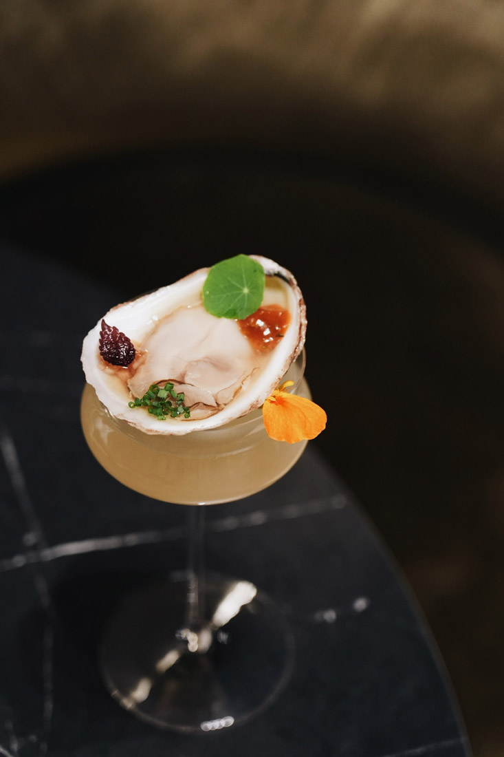 Recreate one of Lucky Star’s signature cocktails (pictured here topped with an oyster) with this recipe, or make a reservation for the omakase experience Wednesday or Thursday.
