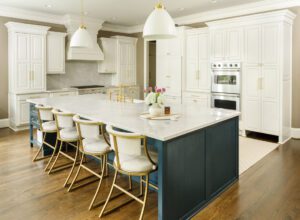 “The kitchen is always a hub of activity and seems like where everyone hangs out when we entertain,” Holly says. “With our renovation, we added comfortable bar seating that allows people to feel like they’re a part of the living room or kitchen. We also added a small seating area in the kitchen because, again, everyone is there anyway. They might as well have a spot to sit.”