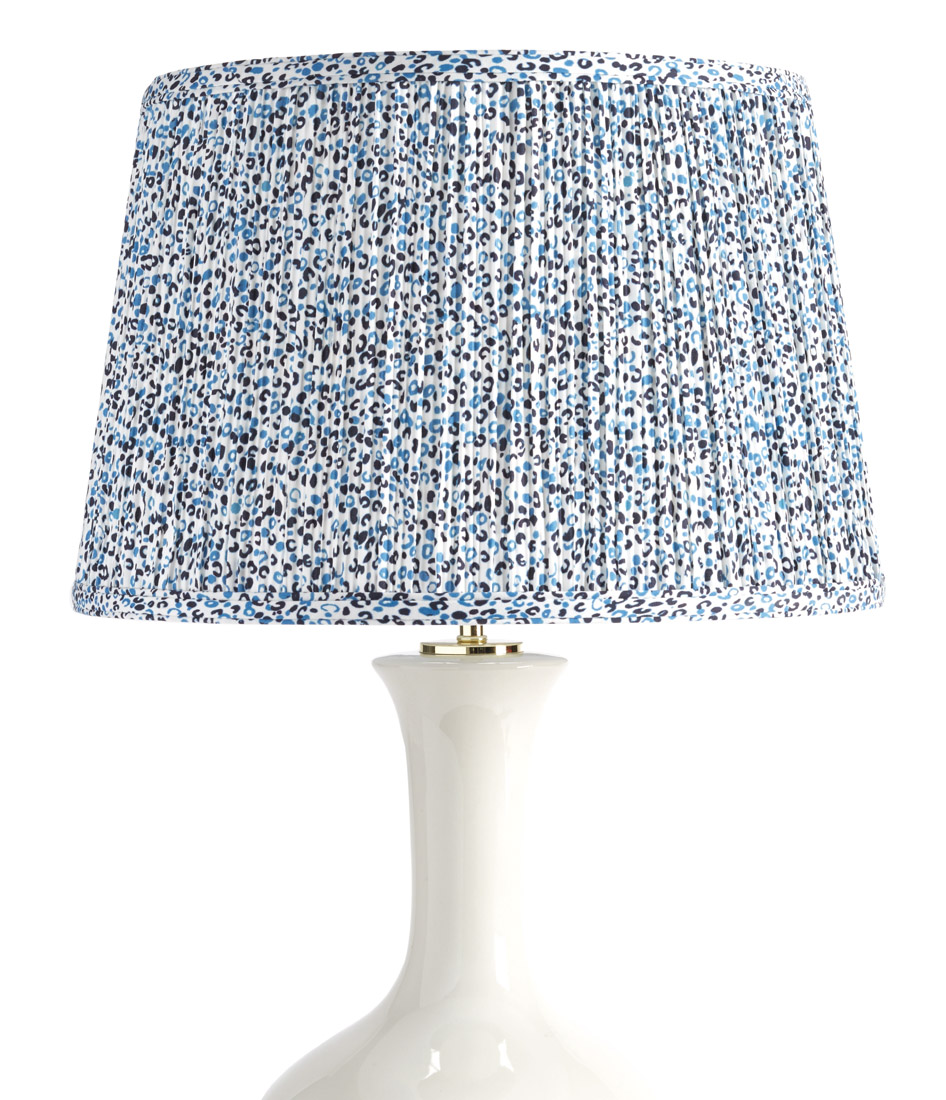 Ballard Designs designers found an antique wild cat fabric and used it as inspiration for an updated and stylish lampshade. The Lynx Lampshade is mushroom pleated and available in three sizes. It is handmade in a cotton blend fabric and comes in trendy colors pear and teal. The lampshade feels at home in a little girl’s room, a guest room or a preppy-chic living area.