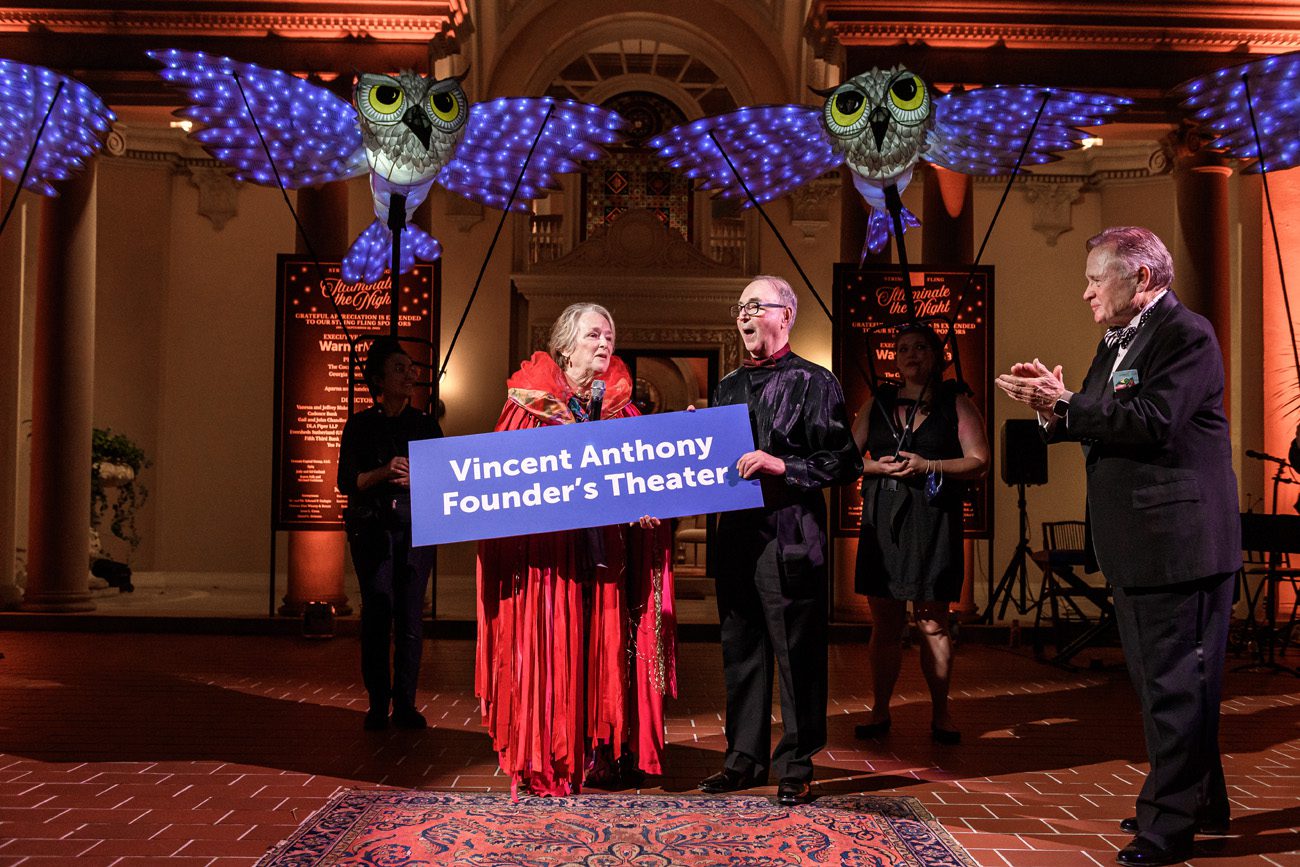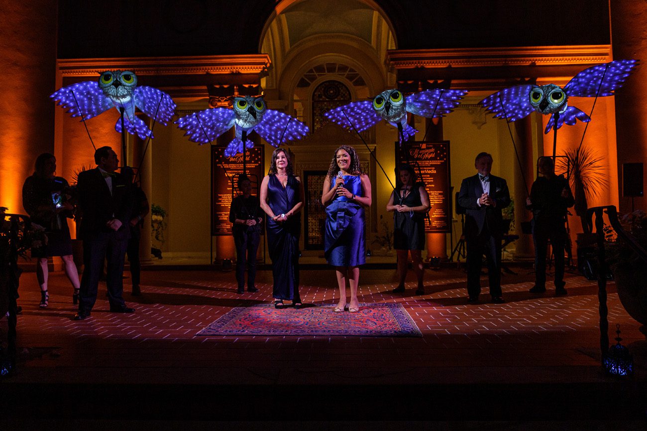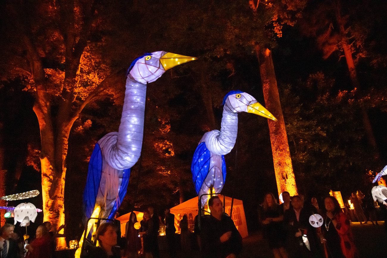 Led by luminary puppets of dragonflies, owls and cranes, more than 200 guests paraded around the grounds of Judy and Ed Garland’s Kingswood home in October during the Center for Puppetry Arts’ String Fling fundraiser.