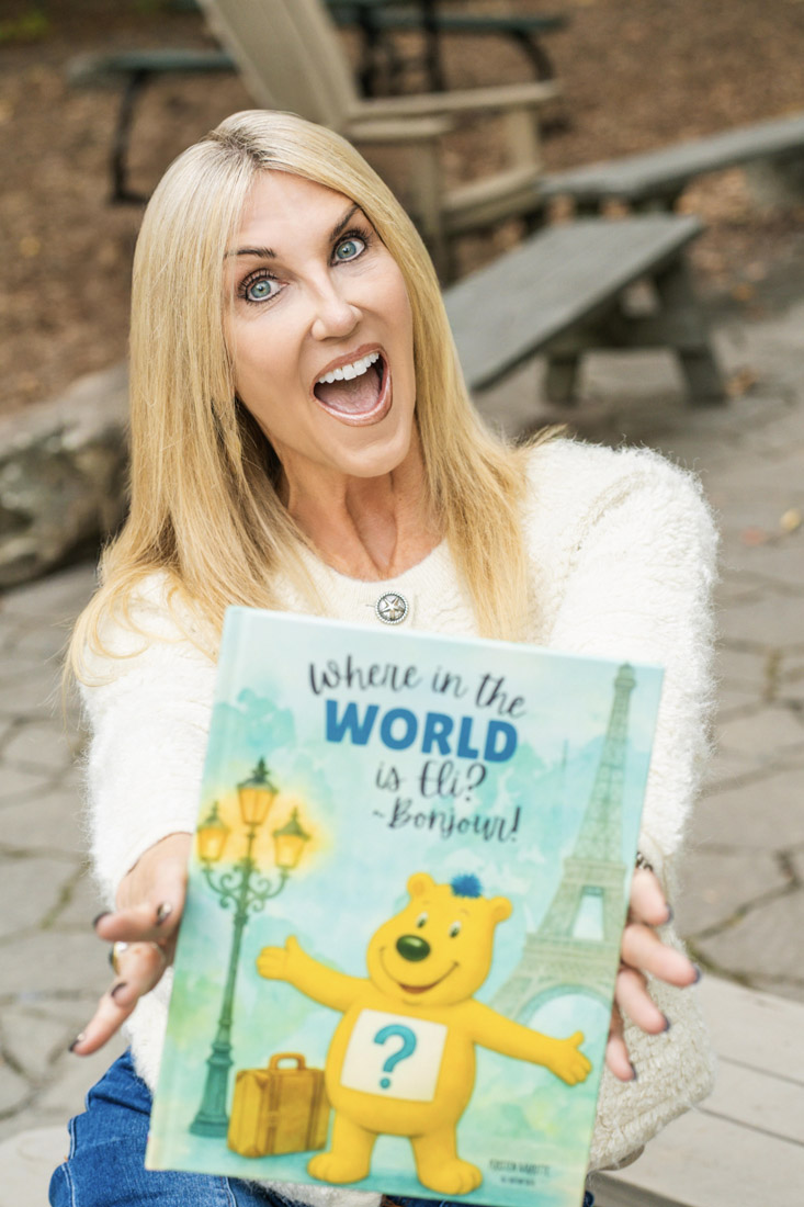 She did some of the initial drawings before hiring an illustrator who perfected the image of Eli whose belly sports the flag of the country he’s visiting. She started an Instagram page and a Facebook page, and got the first book, Where in the World is Eli? Bonjour!, on Amazon. “It’s a bit cryptic; Eli talks about the Mona Lisa but doesn’t specifically say it’s that painting, so the images are important clues,” Marotte says. “The last line of every story has Eli walking into the sunset and says to follow that bear to see what the next country will be.”